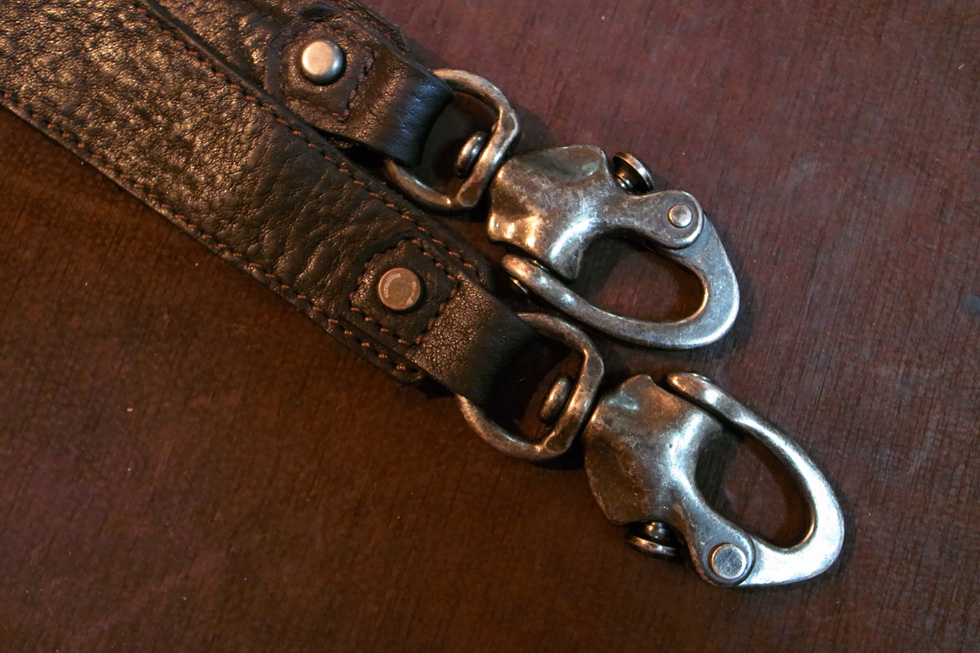 革の他にも、金具、ファスナーにもこだわりをもって、制作しております。日本では1社でしか生産されていない真鍮金具。元はヨットなどの船舶に使う金具でした。真鍮は重たいですが、経年変化が楽しめるので、革に最適な金具です。