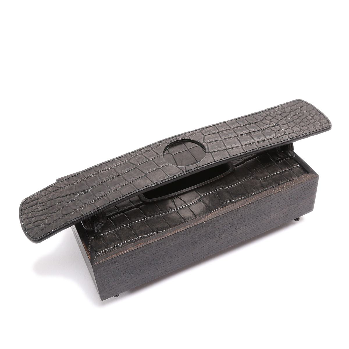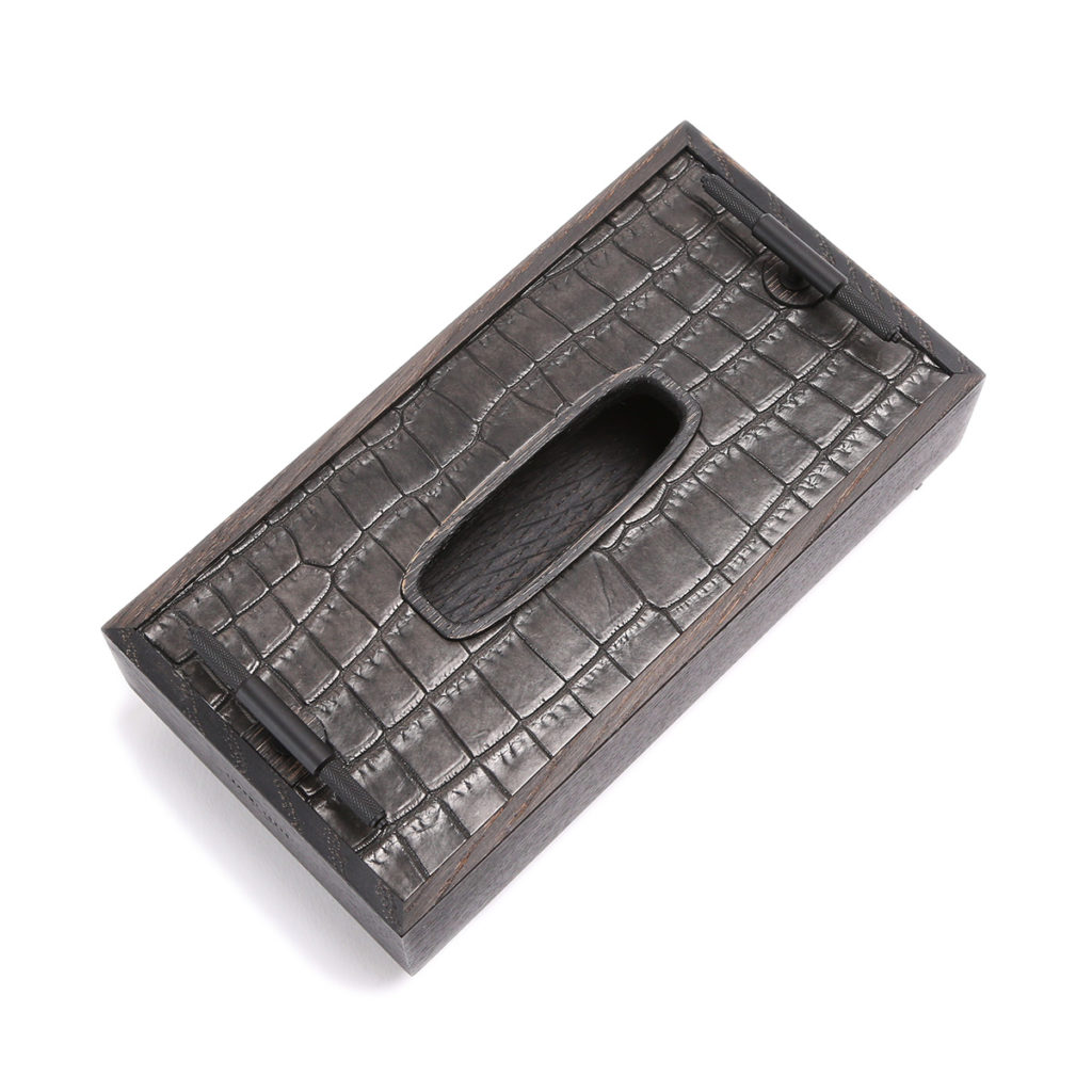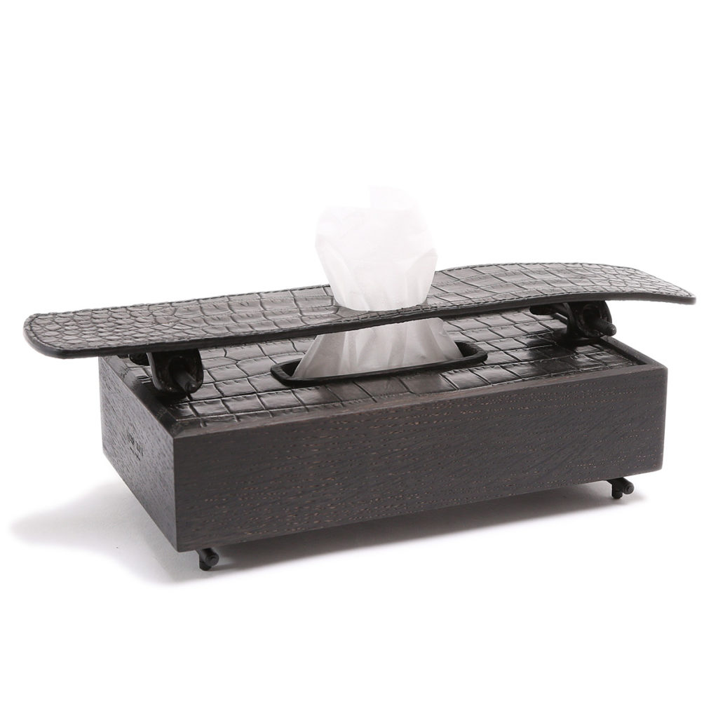 ウッド×レザー×真鍮の素材の掛け合わせが美しいティッシュボックスです。