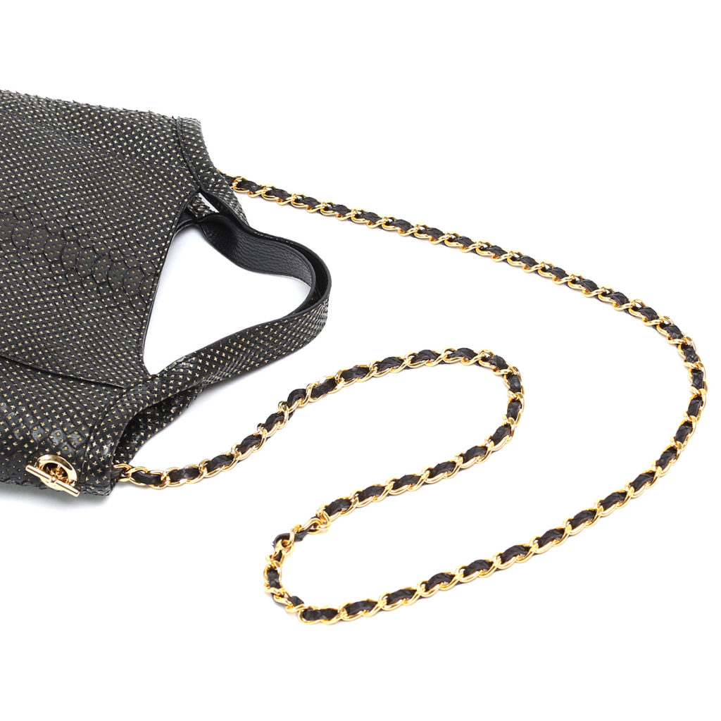 ショルダーチェーンの間にもパイソン革を通しております。