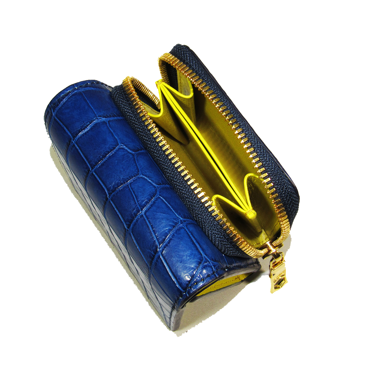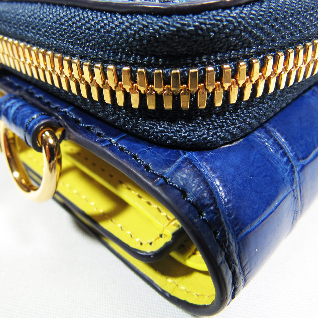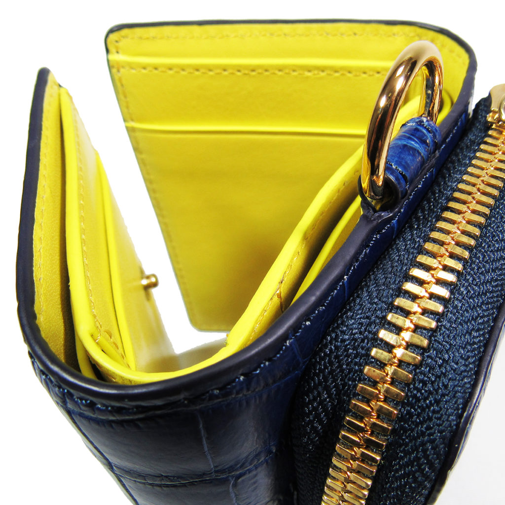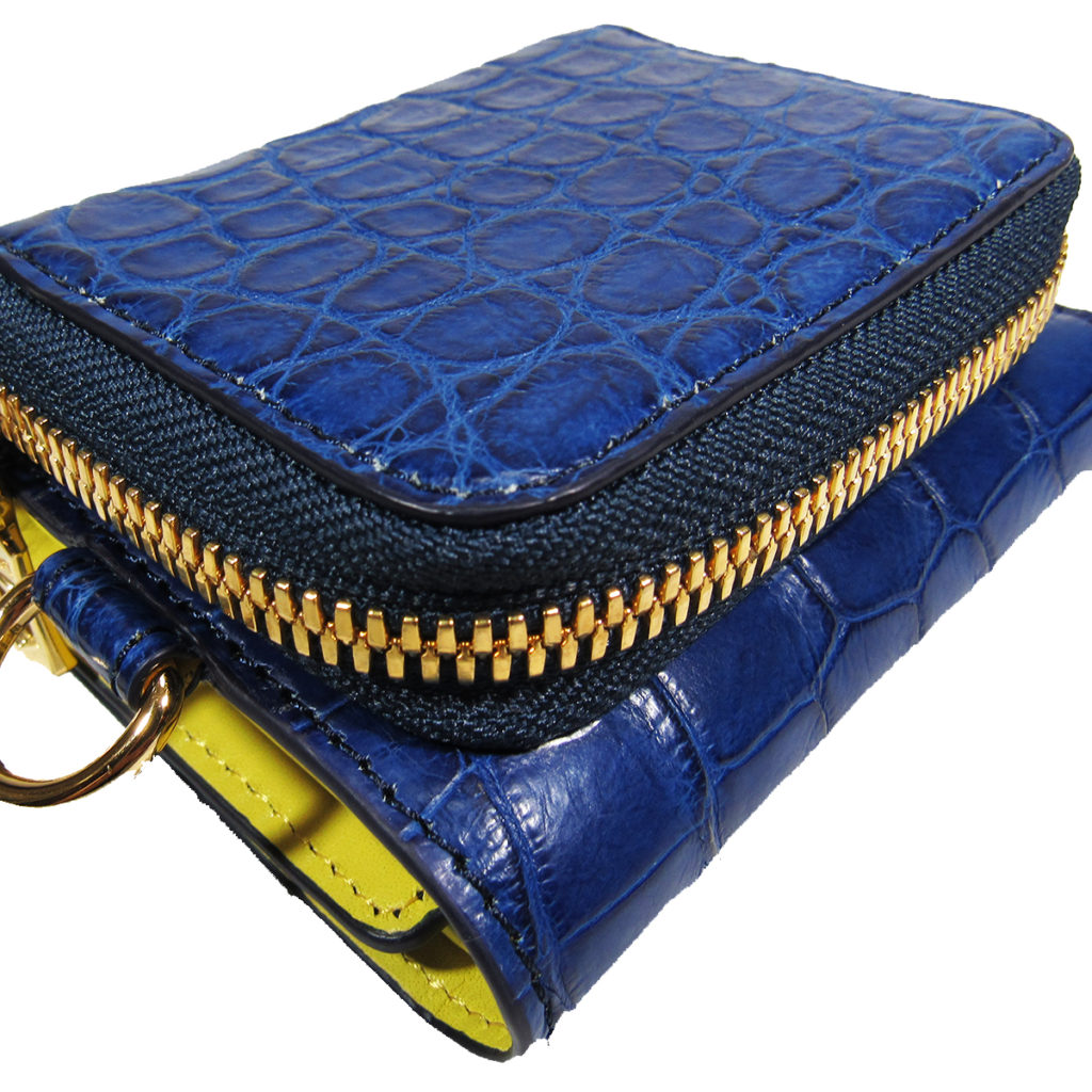 ・本体素材「阿波正藍染スモールクロコダイル(学術名ポロサスクロコ)レザー」