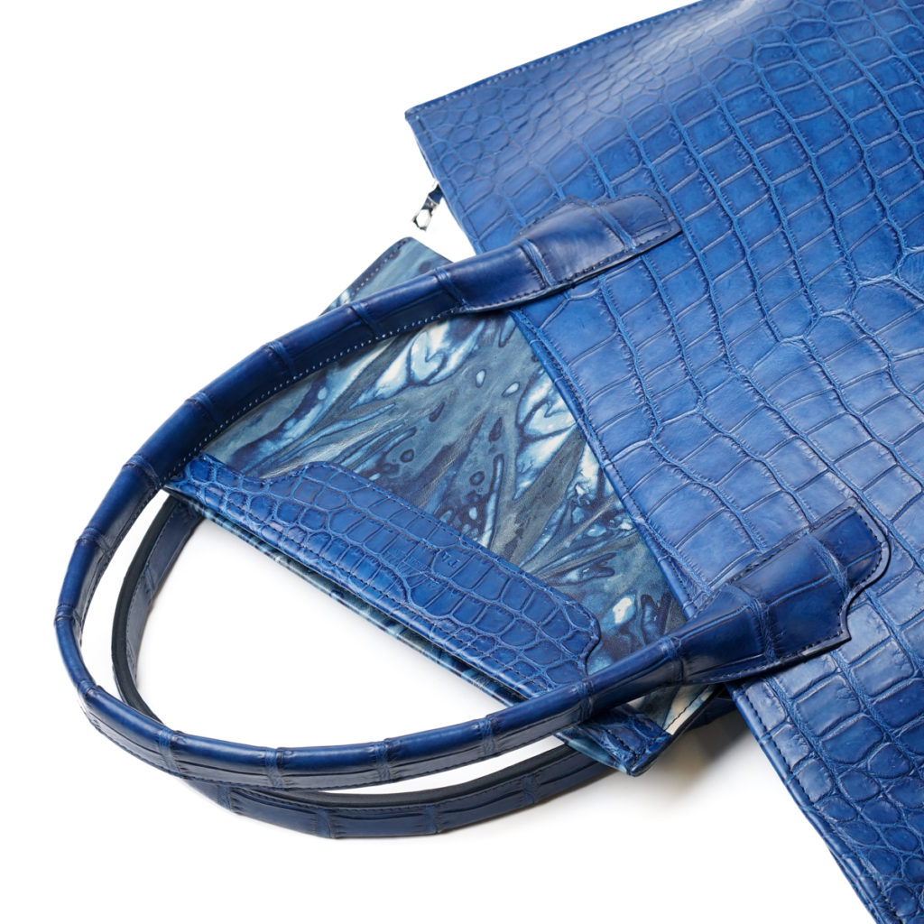 “Fukuyama Leather Sora Ai”דJapan Blue Croco”Spin Tote