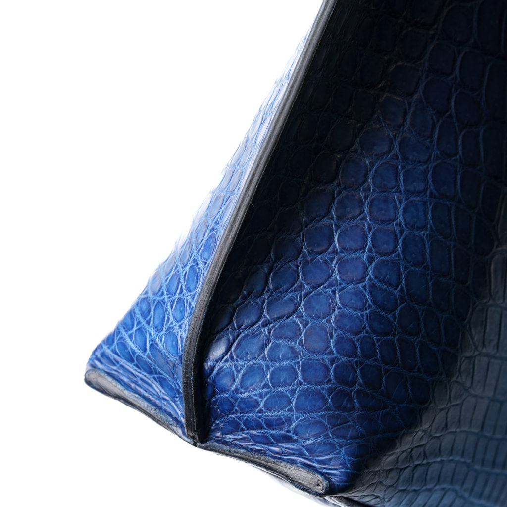 阿波正藍染クロコダイル革を2枚使用しています。(接ぎ無し&センター取り)