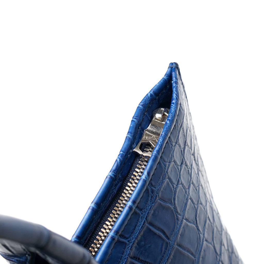 ・本体素材➀「阿波正藍染スモールクロコダイル(学術名ポロサスクロコ)レザー」